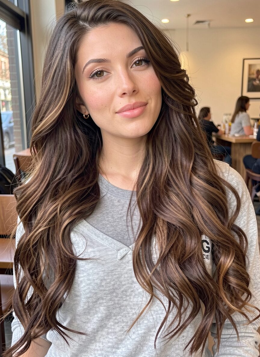 For red-tinged brown base colors like this medium auburn style, a reddish blonde highlight provides wonderful contrast without looking out of place. This strawberry blonde highlight creates a unique look while still employing modern trendy hair coloring techniques.