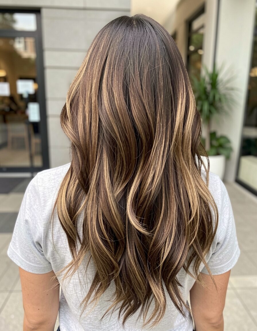 If you're looking for a warm, rich and reddish-tinged way to dress up your dark brown hair, these warm blonde highlights are a dream come true. Thin ribbons of this warm, reddish blonde shade create an excellent color palette for autumn or winter.