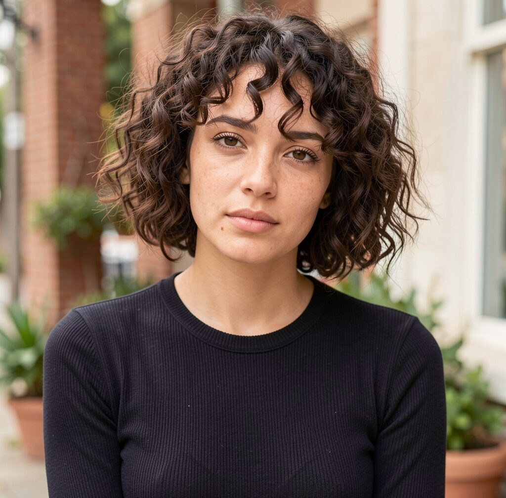 This tousled bob is the perfect lazy hairstyle for girls with textured hair that falls somewhere in between stick straight and spiral curls.