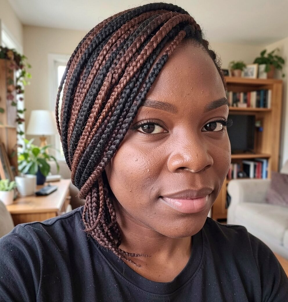 Side Swept Skinny Box Braids Bob