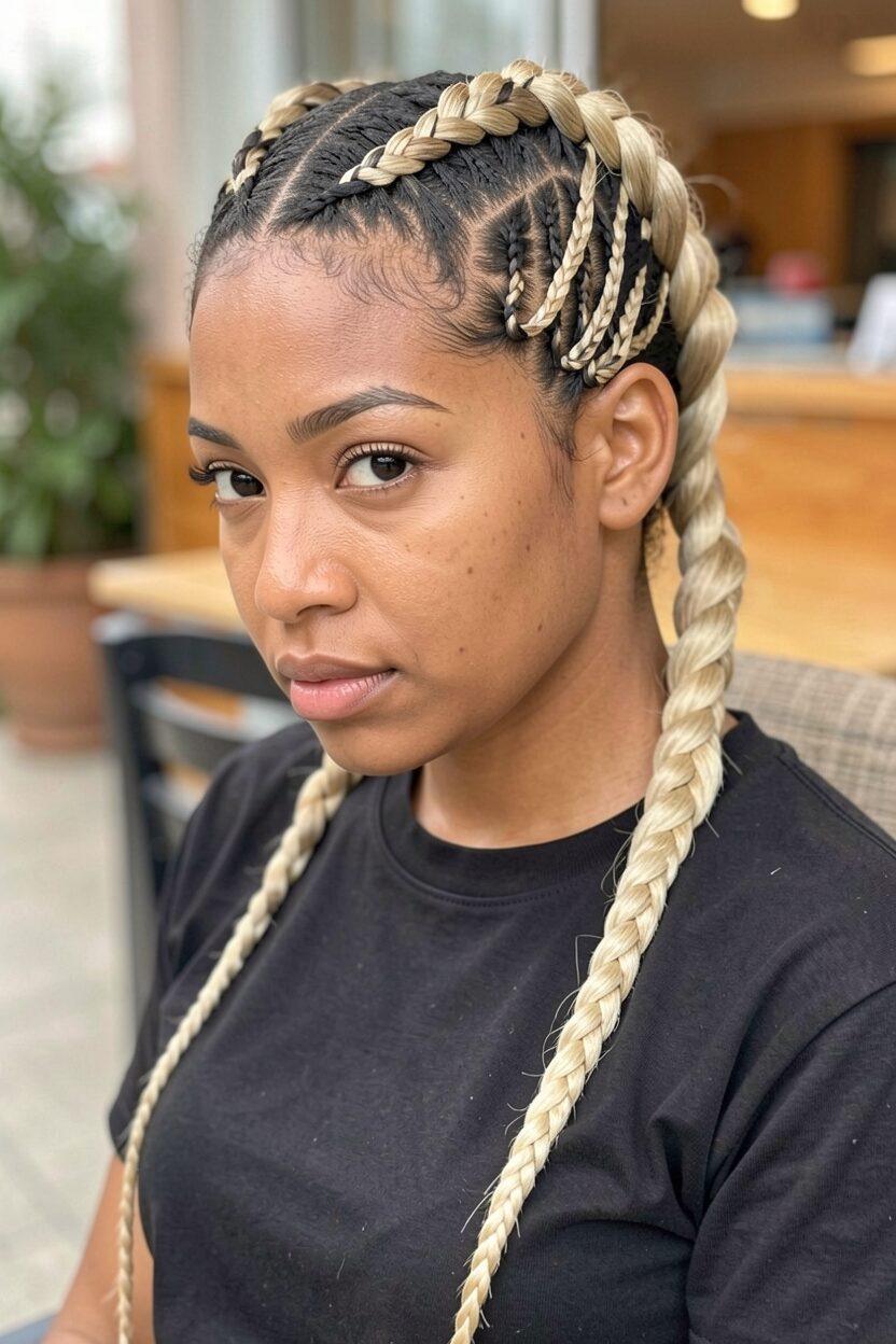 If you're looking for a fun style, these perfect dutch braided blonde cornrows are perfect for those night outs!