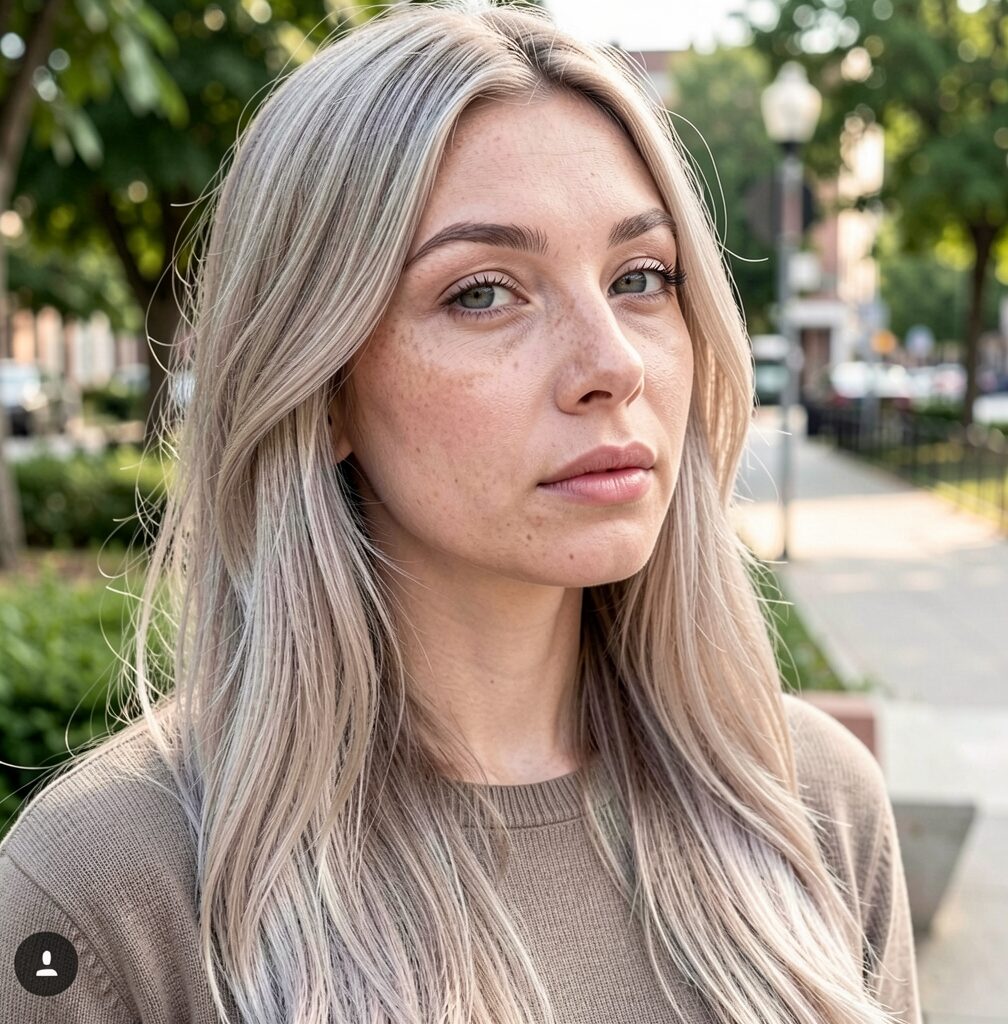 This pale sandy blonde hair base color and buttery blonde highlights are a great example of how different tones of blonde can work together in one hairstyle. Women with pale or relatively neutral skin tones will have the best luck pulling off this style.