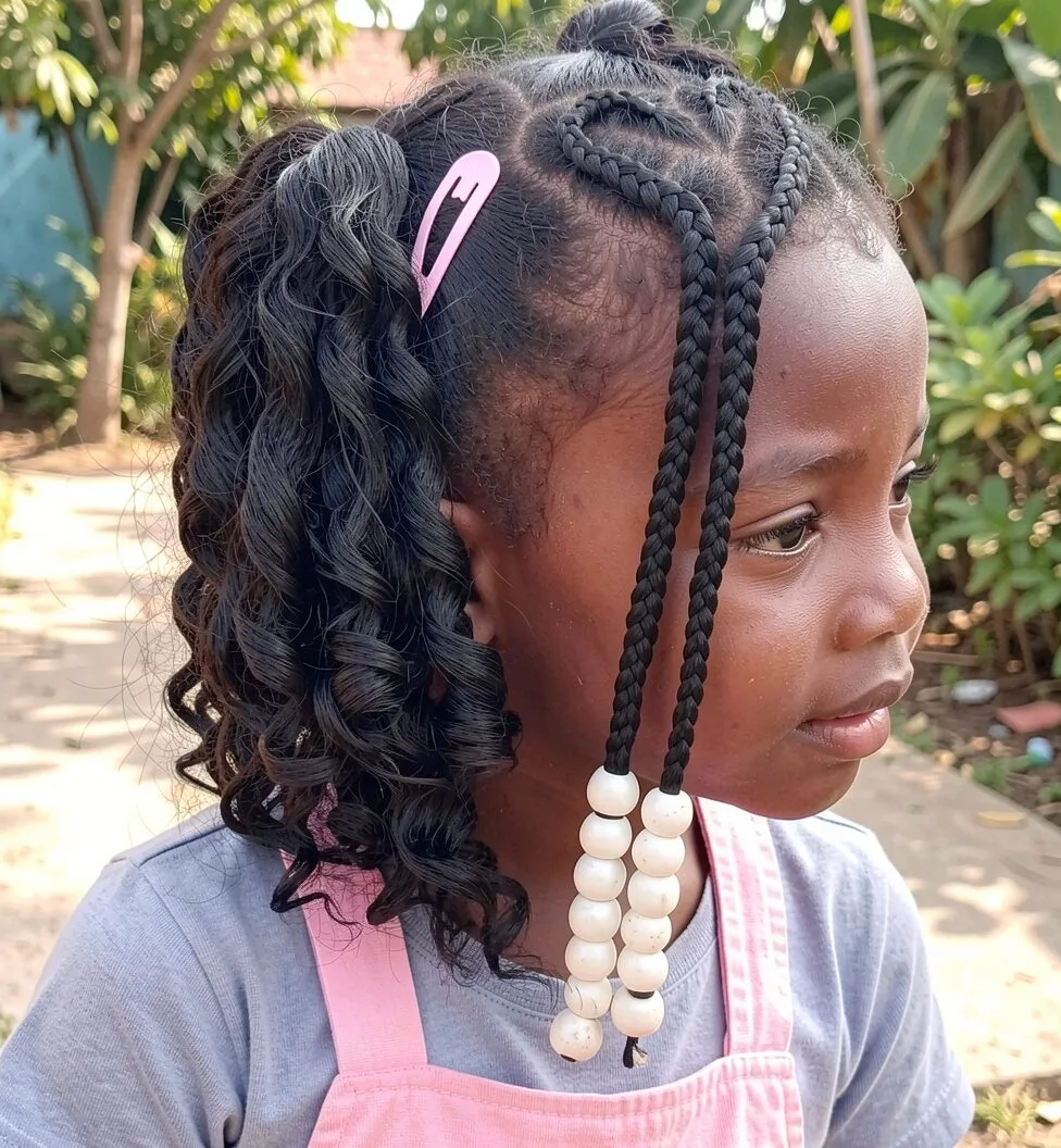 Curly Pigtails and Heart Braids with Beads