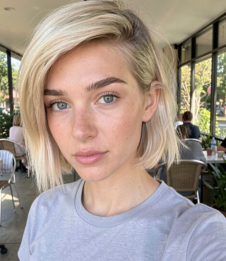 Cool Silvery Blonde Hair Hazel Eyes