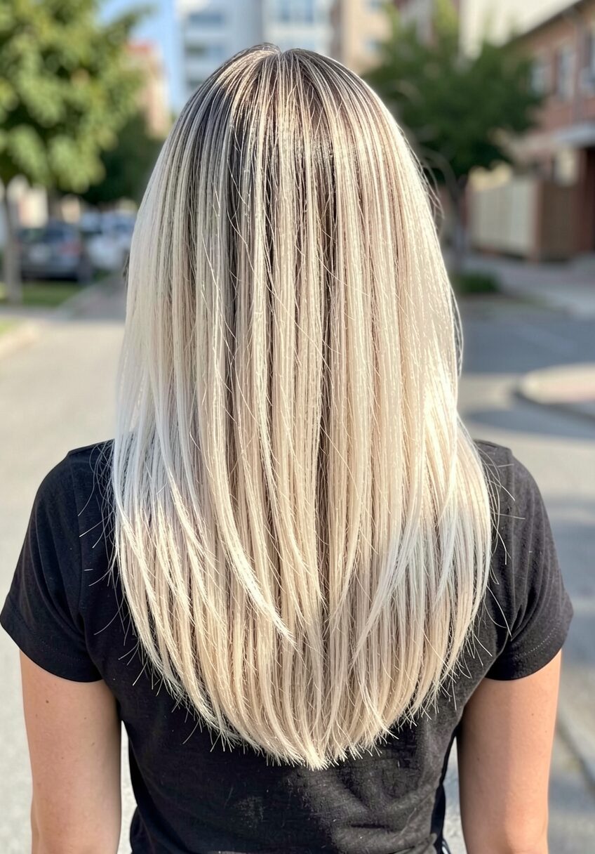 Platinum blonde has often been that coveted blonde hue that so many women strive to achieve. If you want to rock platinum blonde hair with an updated feel, adding a grey tone all over platinum hair is the perfect way to achieve that. Grey toned blonde hair is a huge trend and so fun for the fall and winter seasons when you want to add a darker feel to your hair while still keeping the blonde.