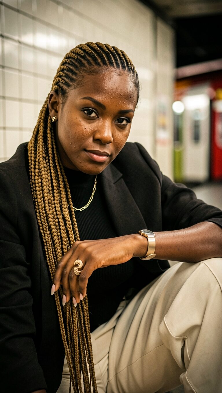 On parle d'audace ! Un magnifique angle rasé donne à cette coiffure un charme unique. L'ajout de cheveux décolorés apporte un peu de légèreté pour un bel équilibre.