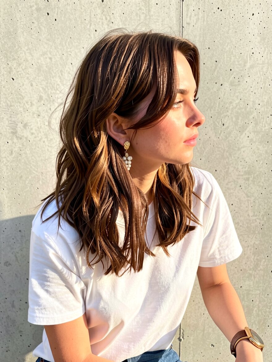 Non seulement les foulards offrent un moyen de mettre tes cheveux mi-longs en chignon, mais ils créent de nombreuses opportunités d'ajouter de la couleur et du motif à ta tenue. Dans ce look, la forme mohawk rend ton foulard