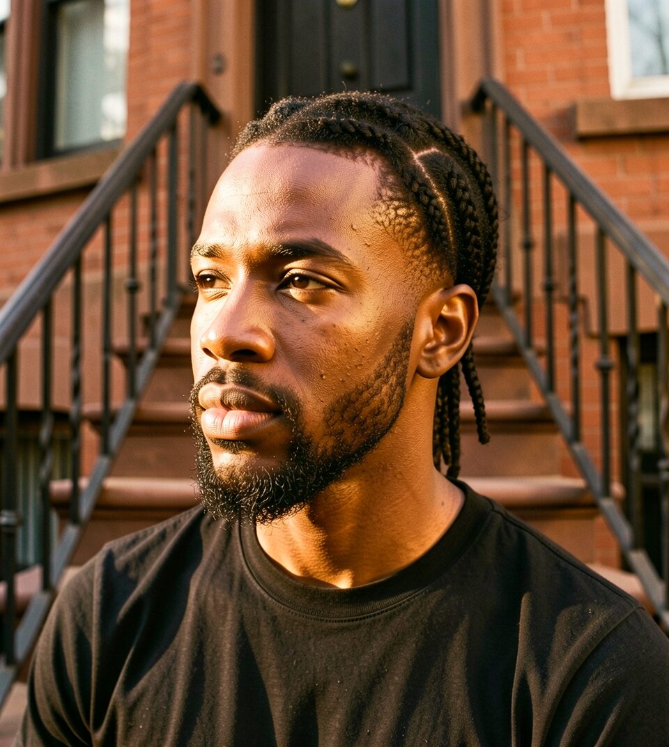 Ces rangées extra-larges ne plaisantent pas. Ce style convient à toute personne avec des cheveux épais ou si tu veux des tresses audacieuses et accrocheuses. C'est parfait pour les visages ovales et pour celles qui préfèrent moins de tresses, mais plus épaisses. Pour des lignes nettes le matin, étire tes baby hairs pendant la nuit avec un foulard en soie.