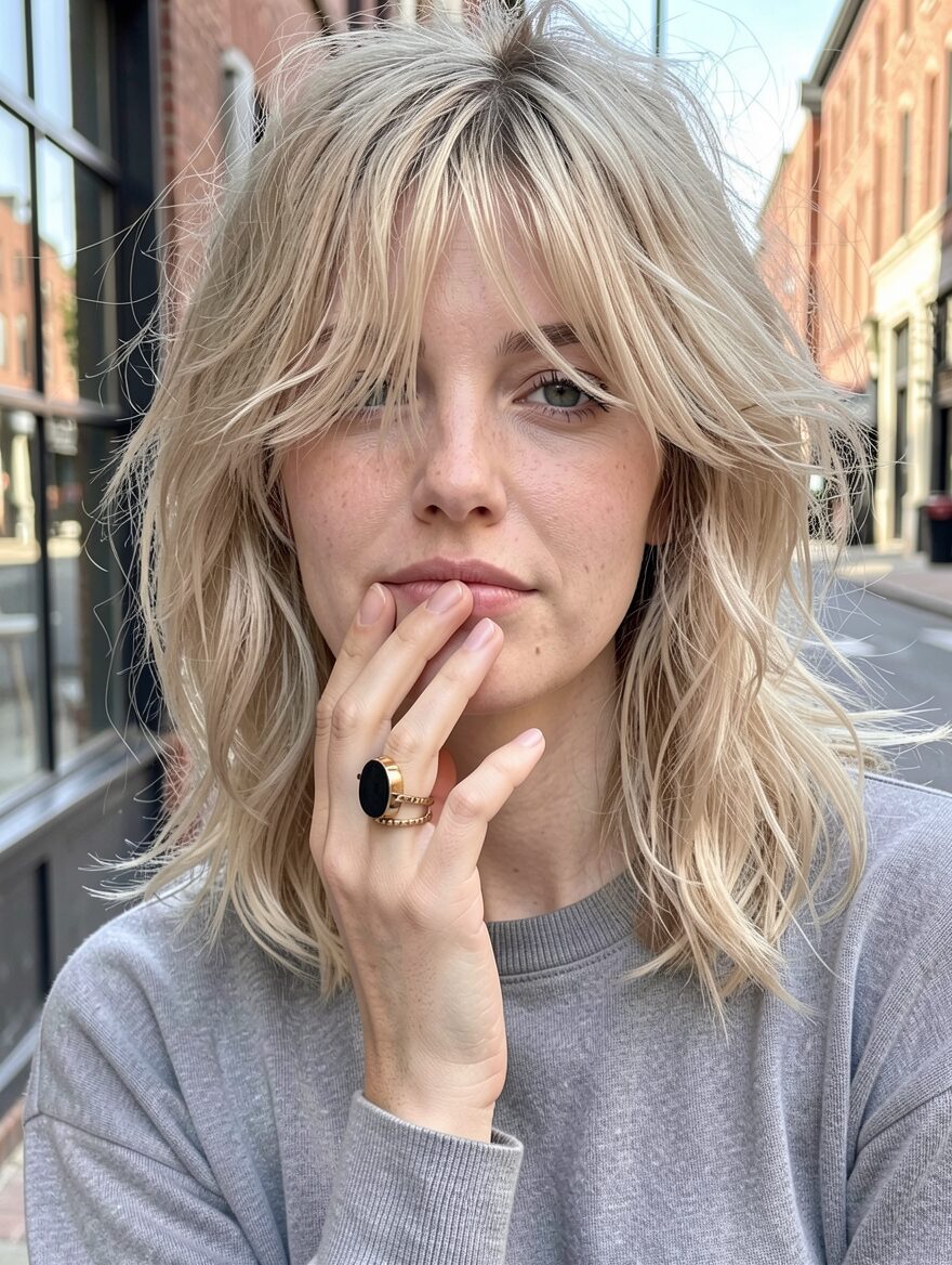 While her style may have been on the cutting edge of fashion in the '70s, Blondie's Deborah Harry became a style icon from the '80s onwards. This pictured style mixes a thick fringe styled with classic '70s flicks and a punky, choppy bob much less structured than the mainstream pageboy style.
