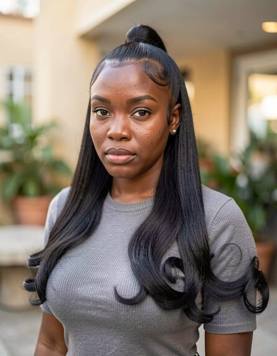 Source This messy style has lots of volume, a twisted bun, and messy waves. Gorgeous!