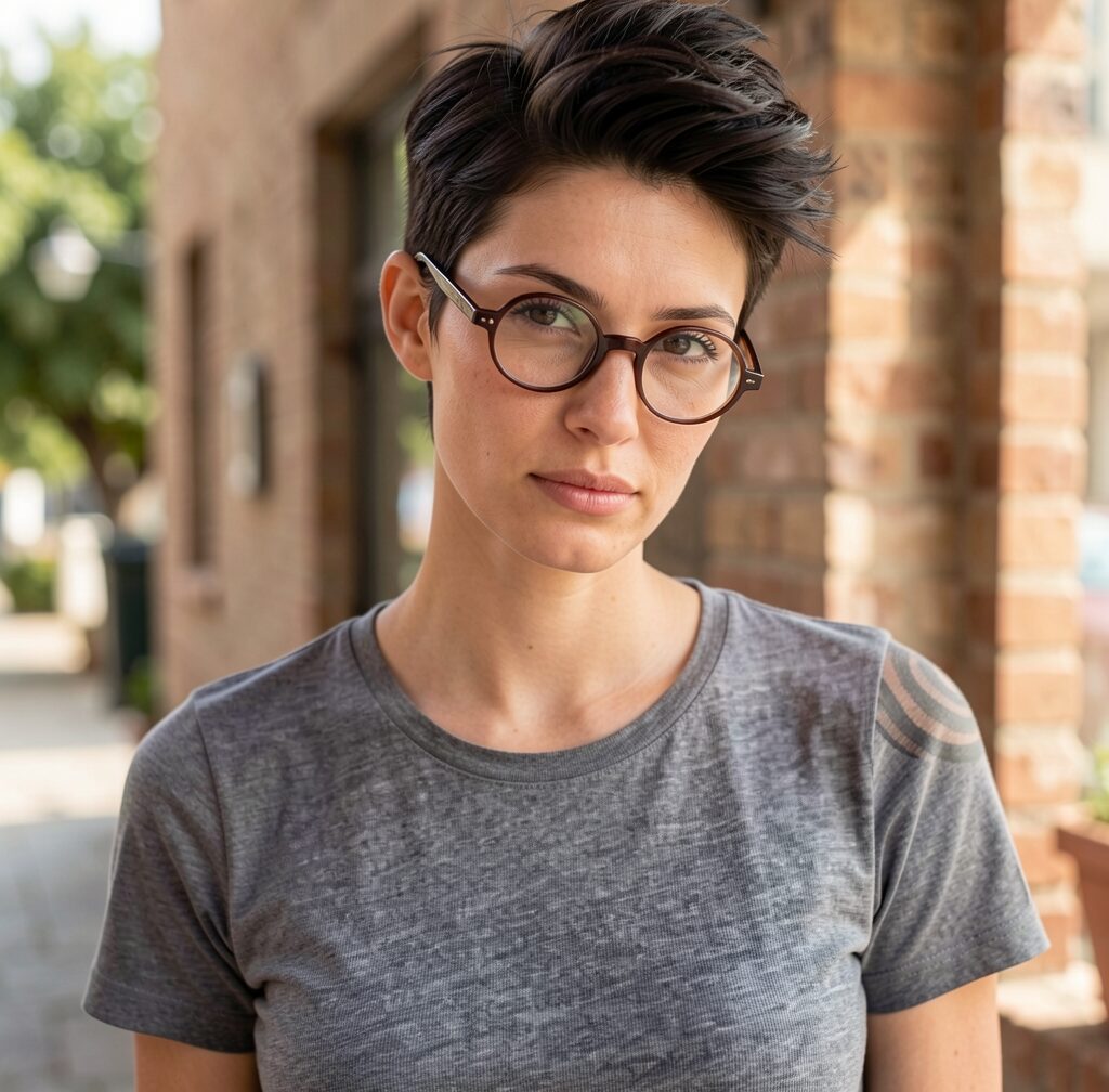 This androgynous take on the men's Ivy League haircut is a simple way to show off your features and open up your face. Some styling is required to keep this haircut looking crisp, and a volumizing mousse will help you to get a side-swept look that's still got tons of height.