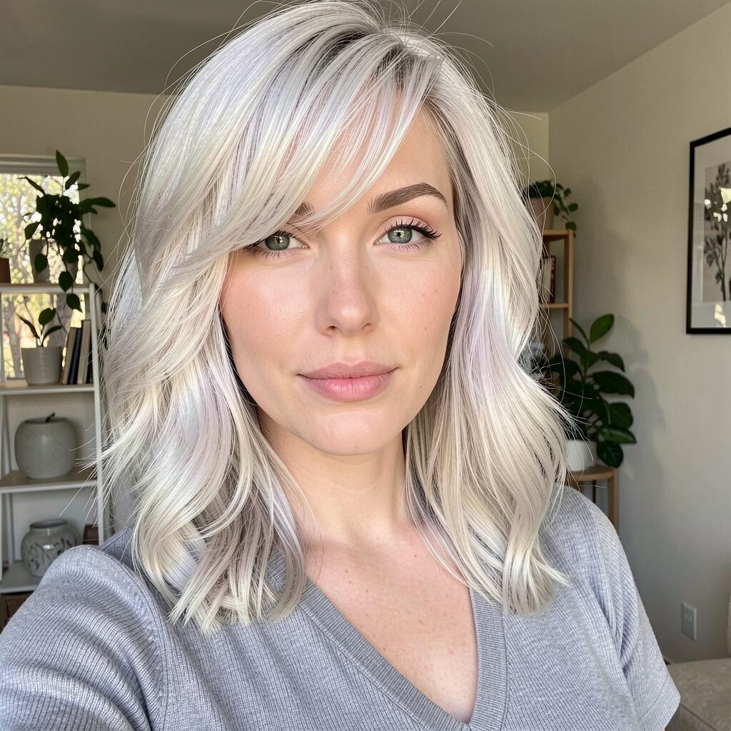 Of course, bangs come in all shapes and sizes! We couldn’t leave you with just one option. Here they opted for a soft, side swept bang cut added to medium length bob. The bangs add this really gorgeous face frame addition.