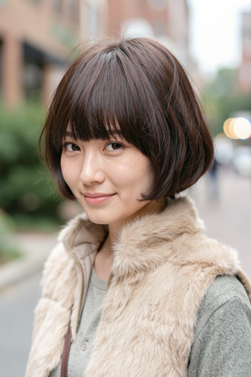 Cute Purple Pageboy with Short Bangs
