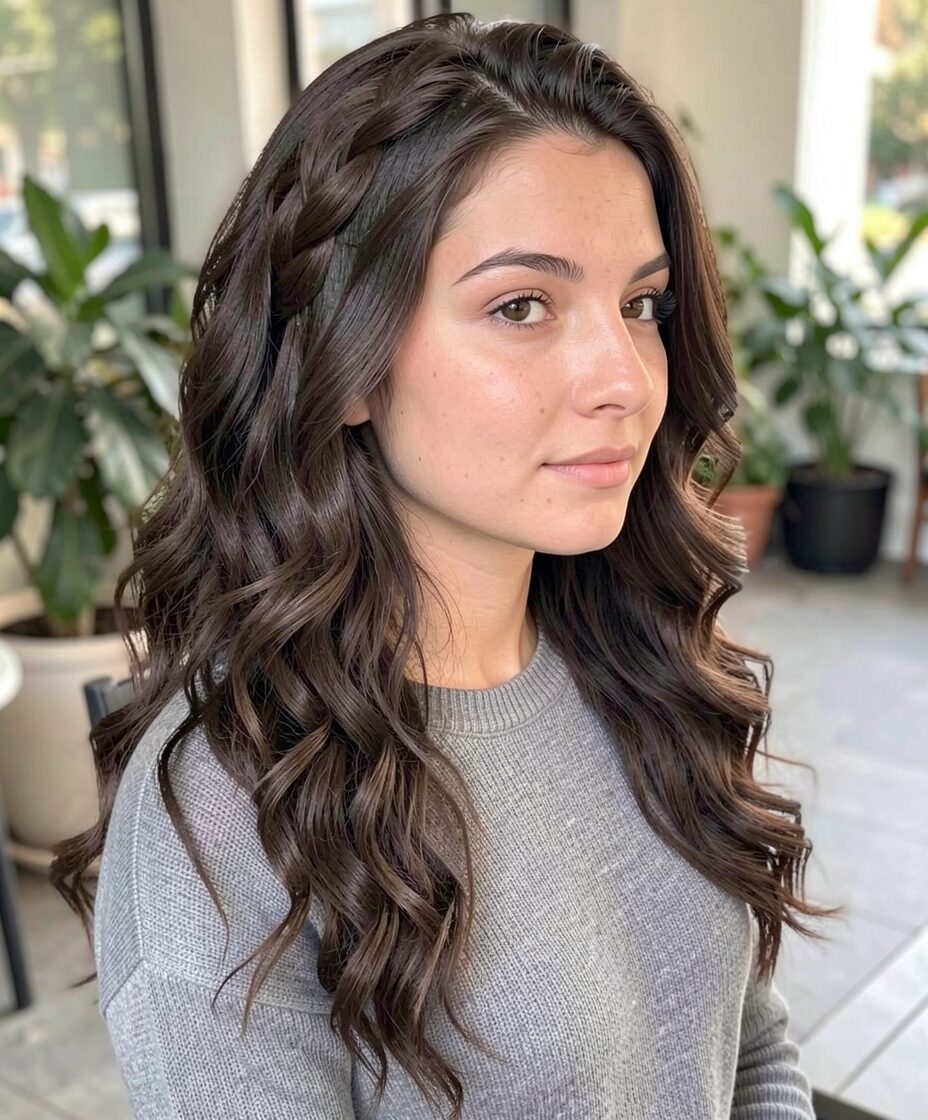 long curls with side braid quince