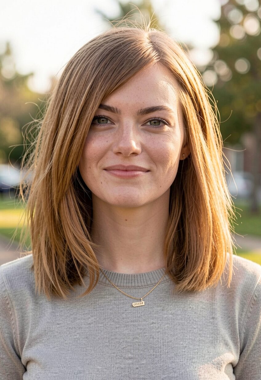 Shoulder Length Layered Hair: Lob with Side Bangs