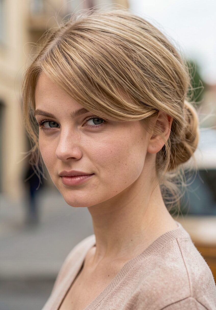 With long textured side swept bangs that create amazing angles, Ginnifer Goodwin's pixie shows how flattering a shorter hairstyle can be on women with round faces.