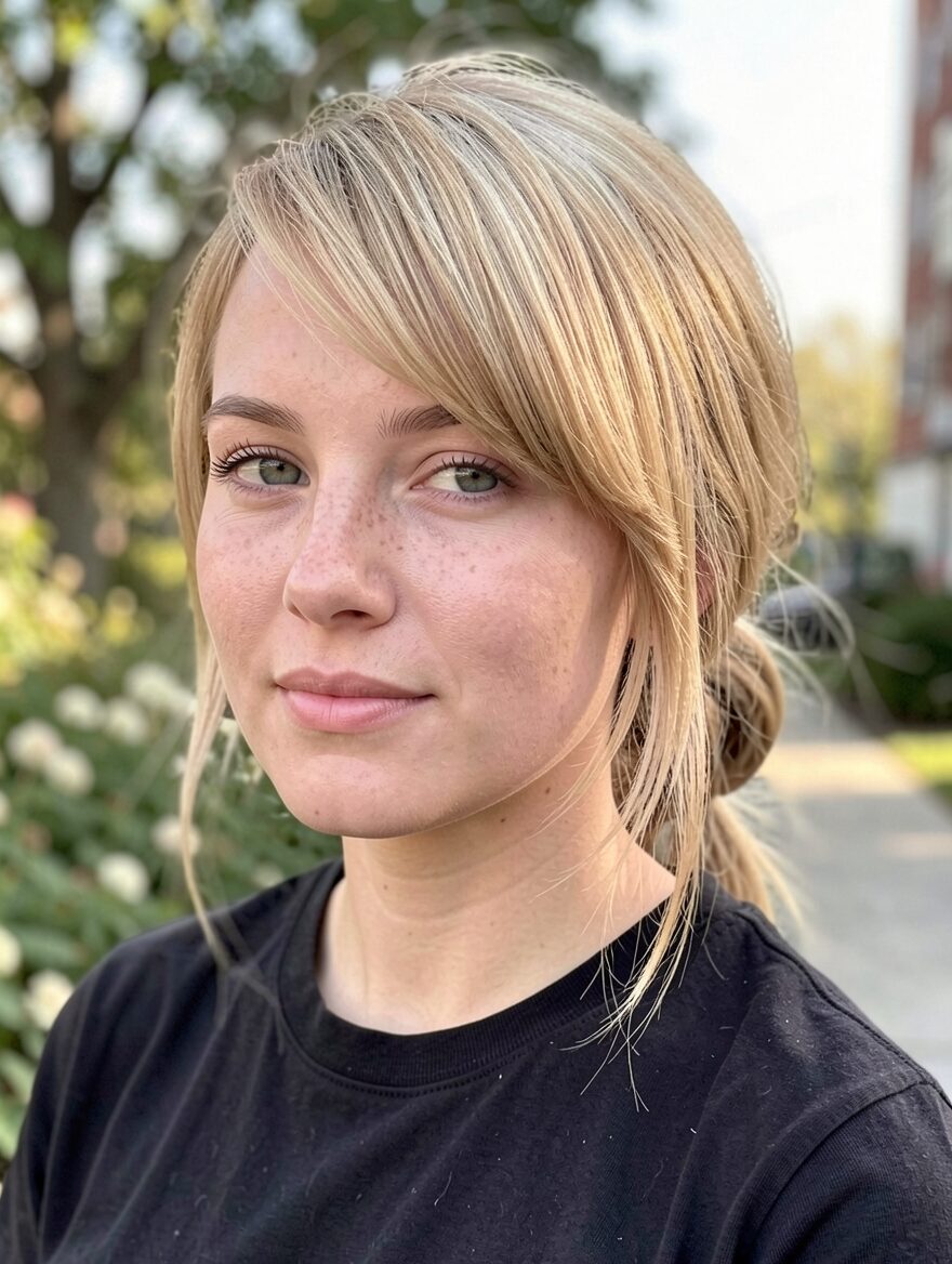 Messy ponytail with side bang