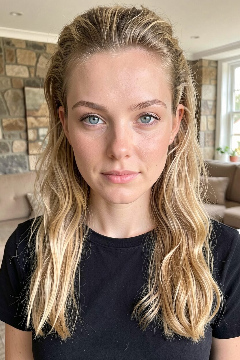 Half Top Knot and Beachy Blonde Waves