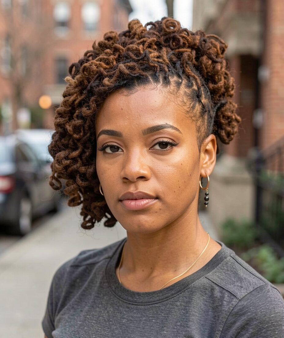 Next we have the curly bun. If you have naturally curly hair this would be a super cute style to try without risking damage from heat to your hair. Pairing this with a dainty garnish really pulls the look together.